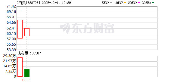 C百奥(688796)上市首日上涨146.63%,换手率达75.80%,成交额为16.71亿元。